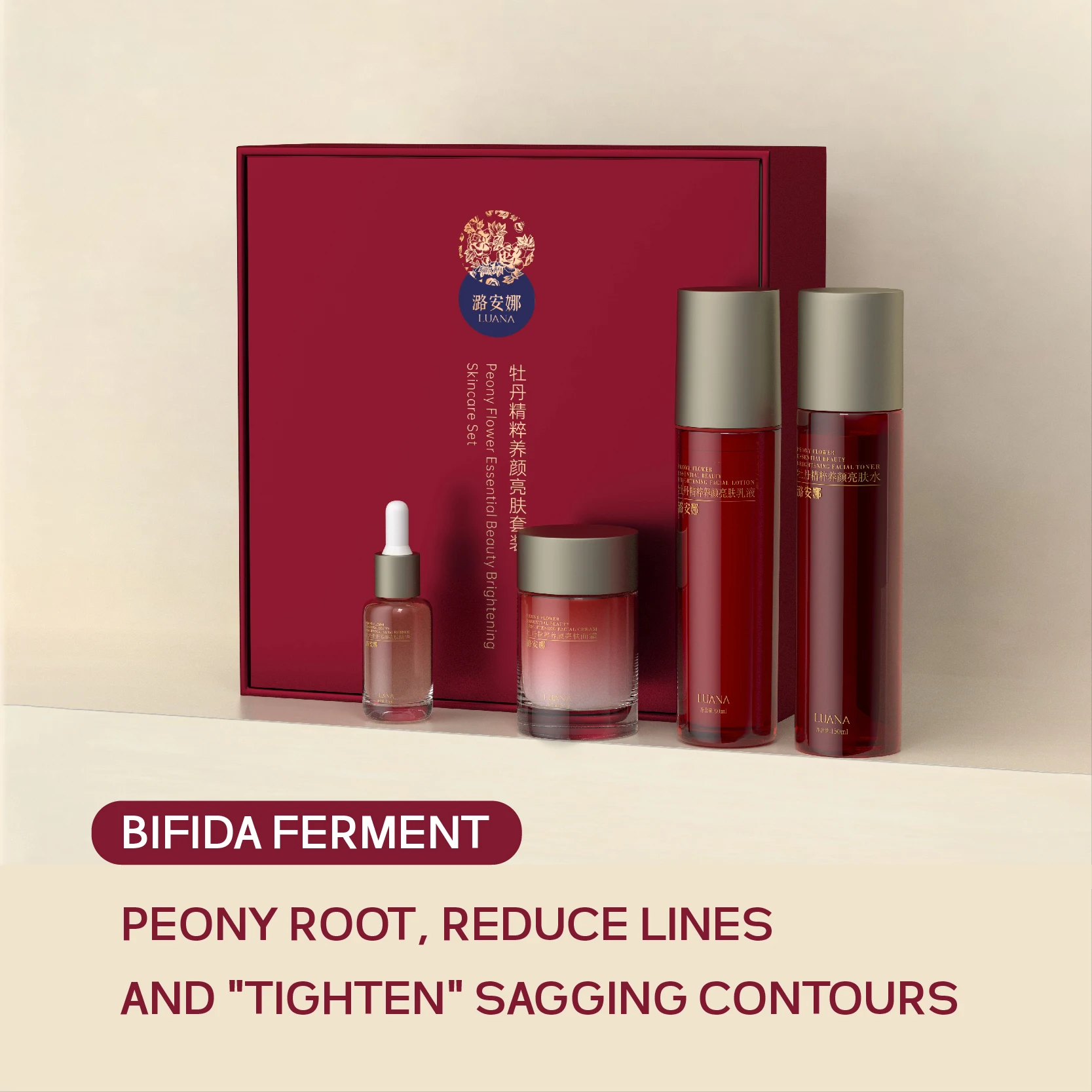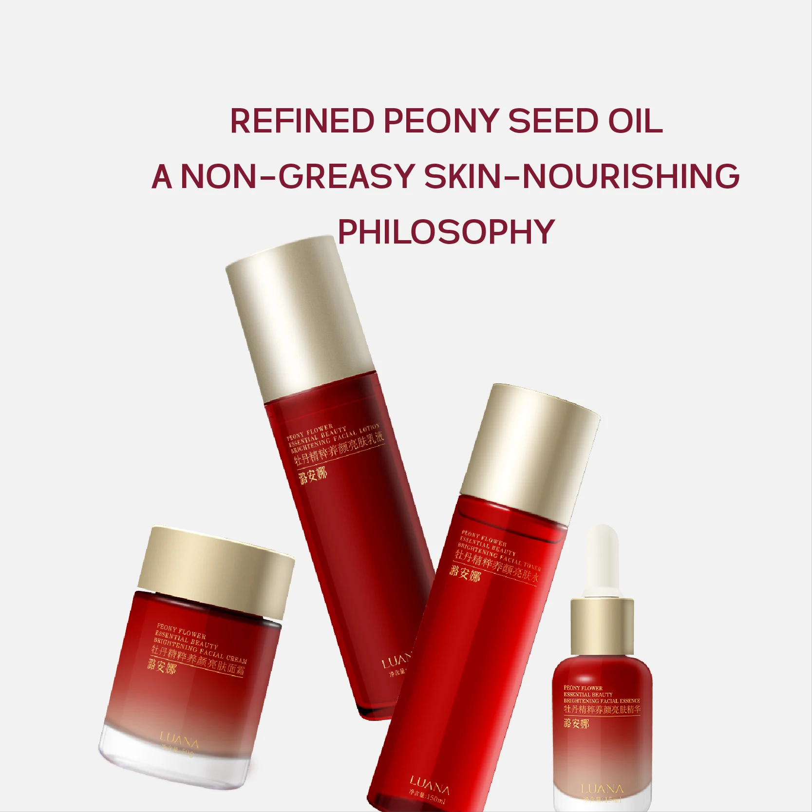 LUANA Peony Revival Honey Extract Daily Radiant Complexion Skincare Set Custom Home Regimen Face Toner Lotion Serum Cream Skin